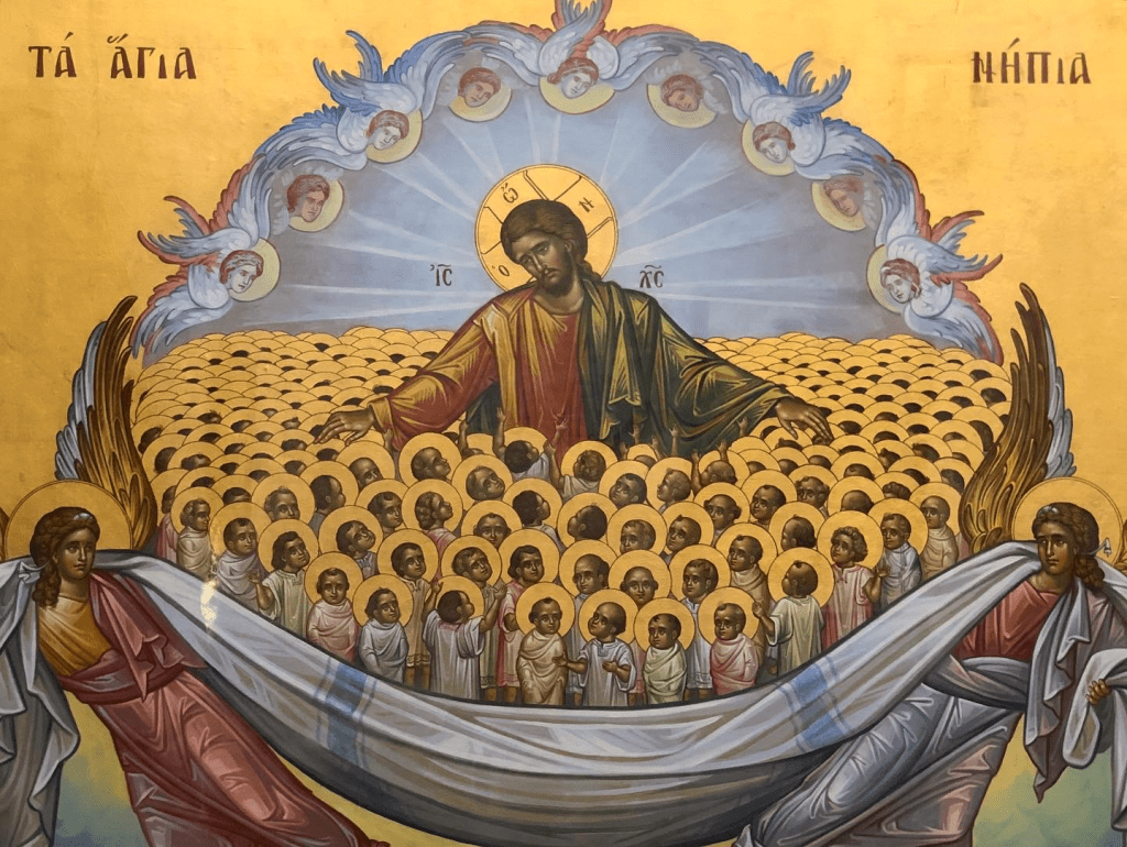 The Holy Innocents are the children slain by Herod when the wise men did not return to Jerusalem (Matthew 2:16-18). Realistically the number of children killed was probably less than 30 but the numbers became quite inflated in the traditions, which was possibly done to reflect the horror of the event. The day is spent reflecting on the preciousness of childhood.
